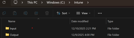 Once you have downloaded the zip, extract its contents and copy the IntuneWinAppUtil.exe file into the Intune directory you created earlier. You should now have a directory structure like the following: