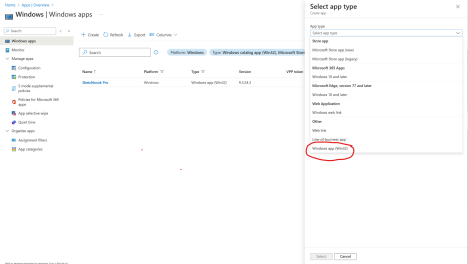 Log in to the Intune admin center and add a new Windows app Deployment: Make sure to select the app type of Windows app (Win32).